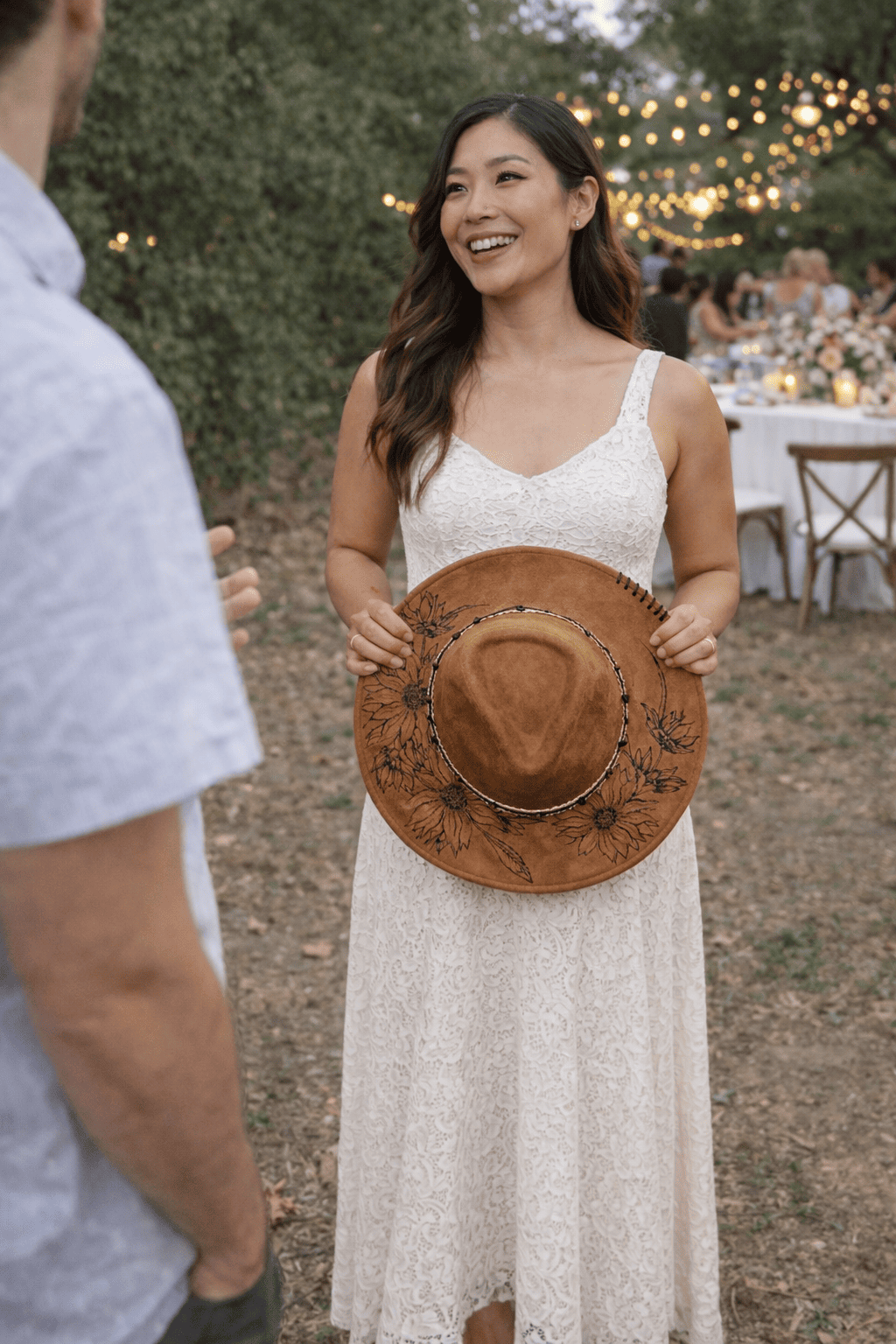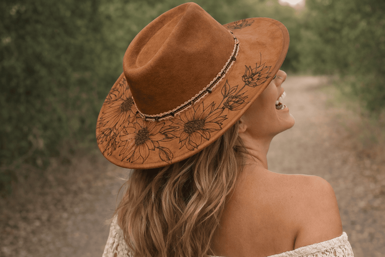 Sunflower Reverie Hand-Burnt Wide Brim Hat