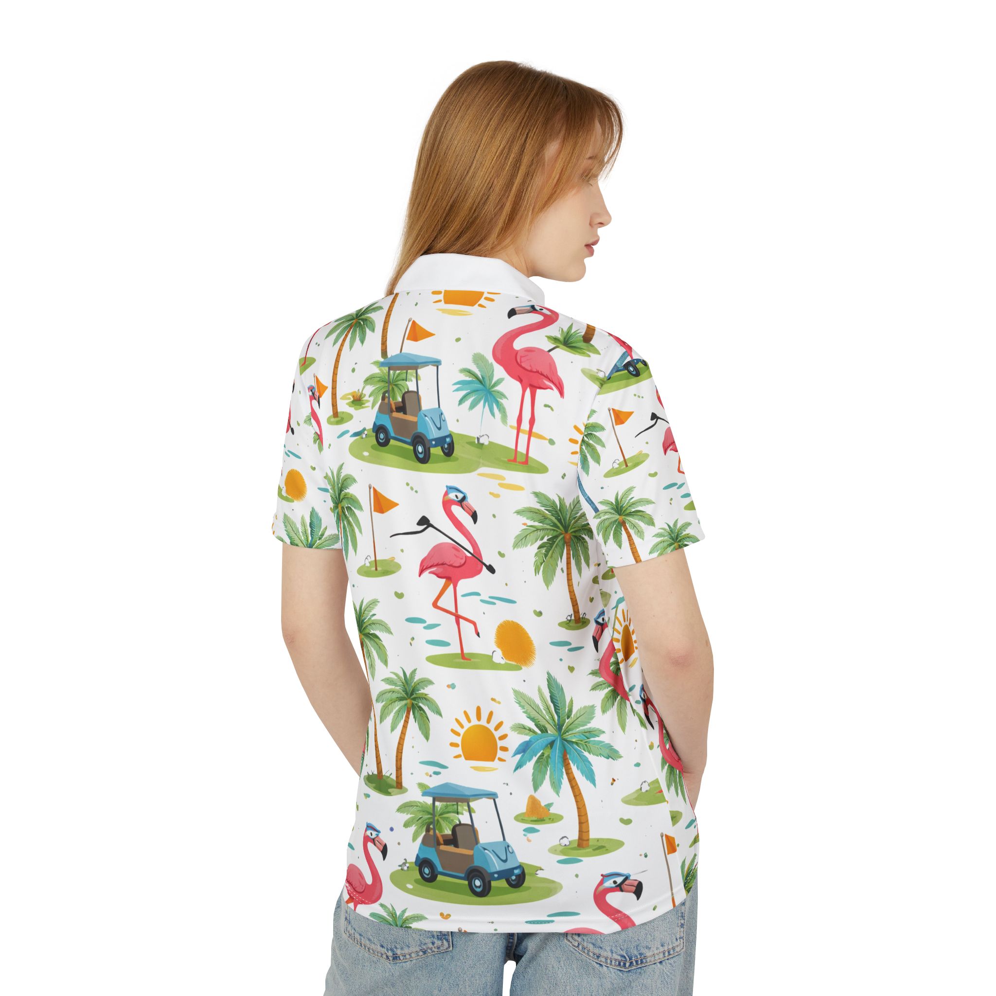 Some chase pars. Others chase sunsets. The Birdie Bay Polo™ was made for the player who brings vacation energy to competition. Flamingos mid-swing, palms swaying, carts cruising, sun blazing — it’s a reminder that golf is supposed to be fun… even when you’re taking someone’s money on 18.